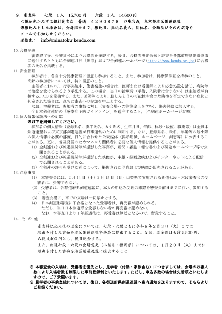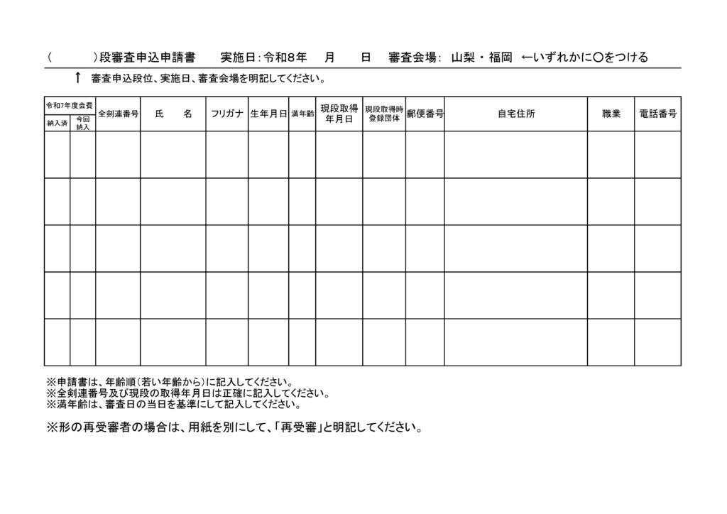 六段・七段審査会(山梨)のお知らせ(令和8年2月開催)