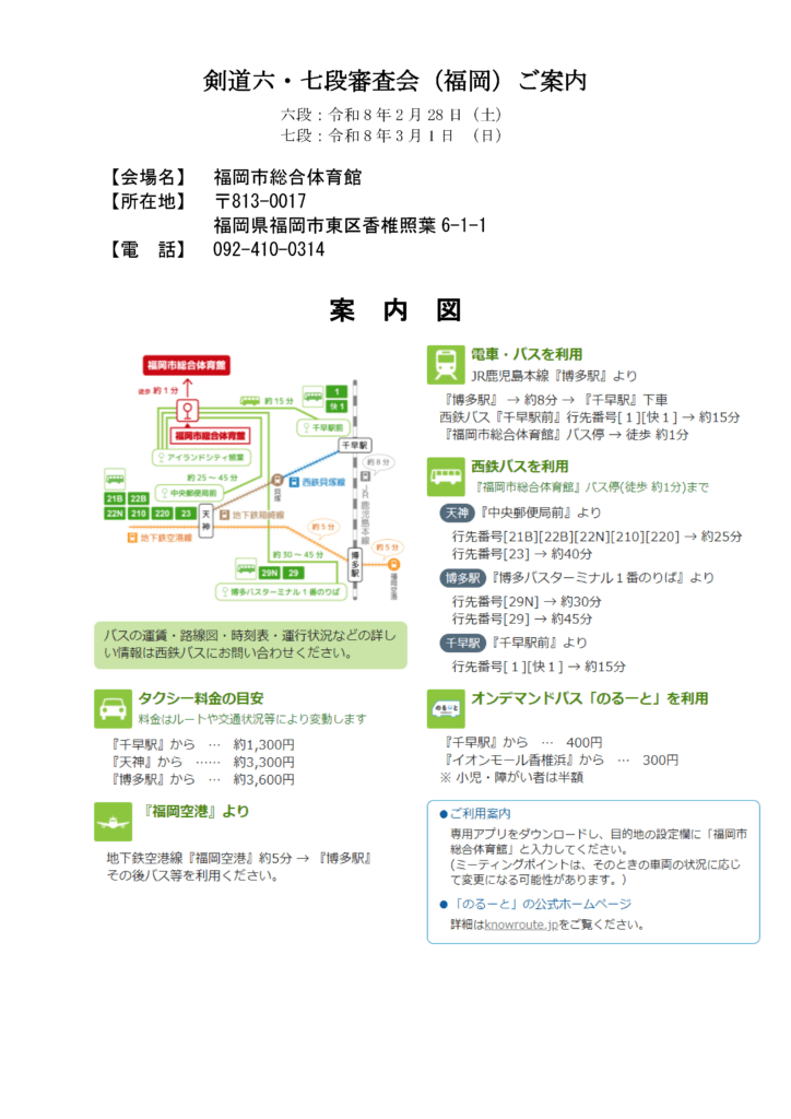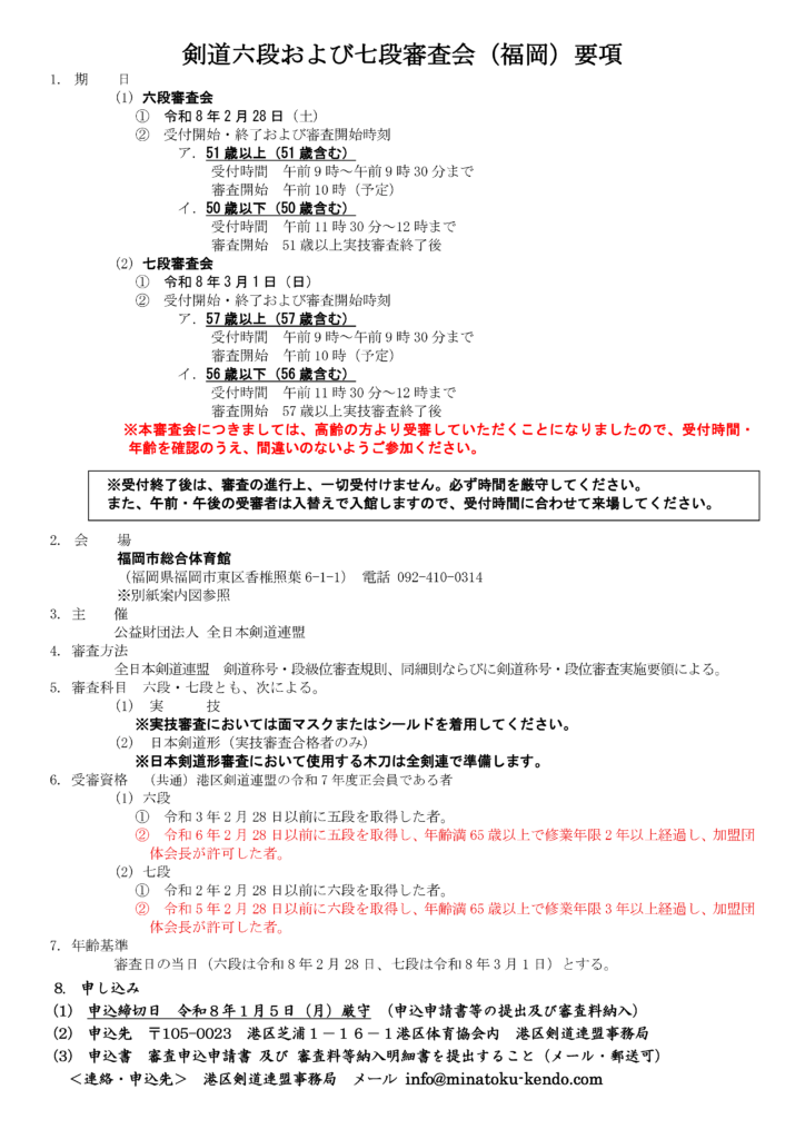 六段・七段審査会(福岡)のお知らせ(令和8年2月・3月開催)