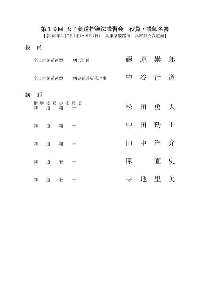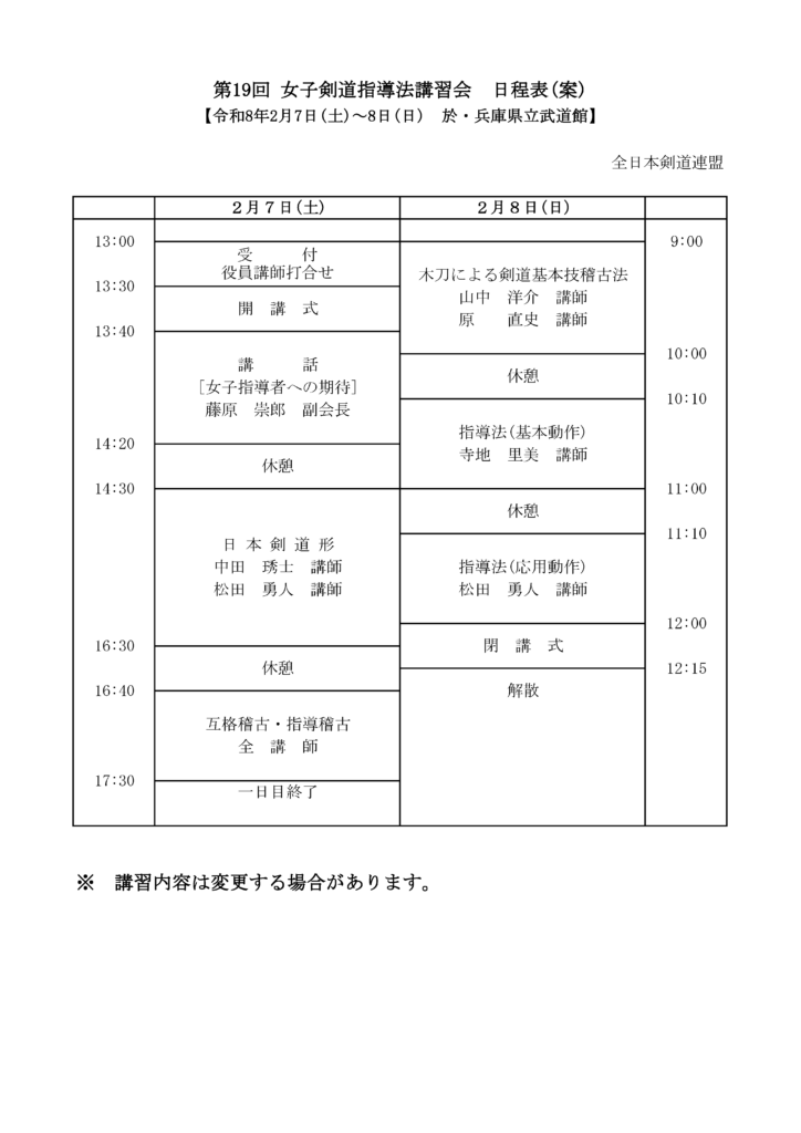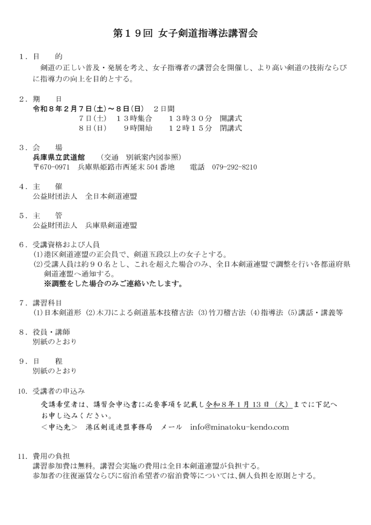 全剣連主催 女子剣道指導法講習会のお知らせ(令和8年2月開催)
