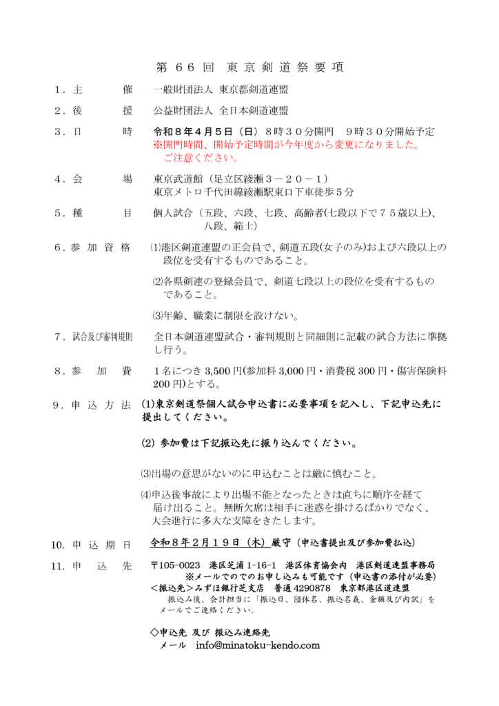 東京剣道祭のお知らせ(令和8年4月5日開催)