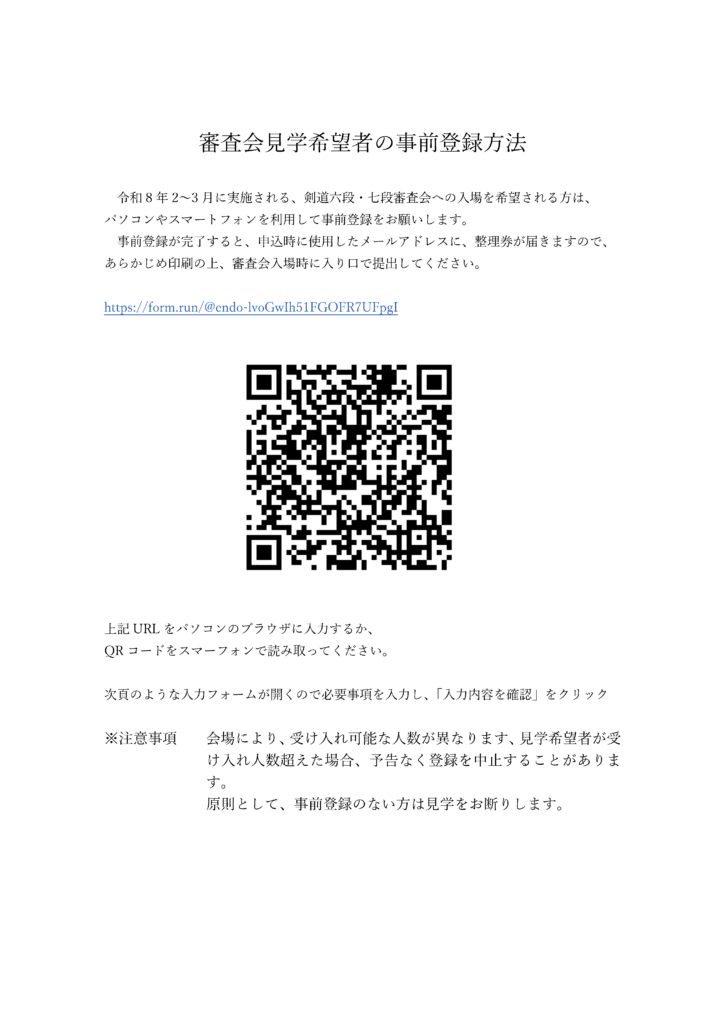審査会見学希望者の事前登録方法(令和8年2月・3月開催)