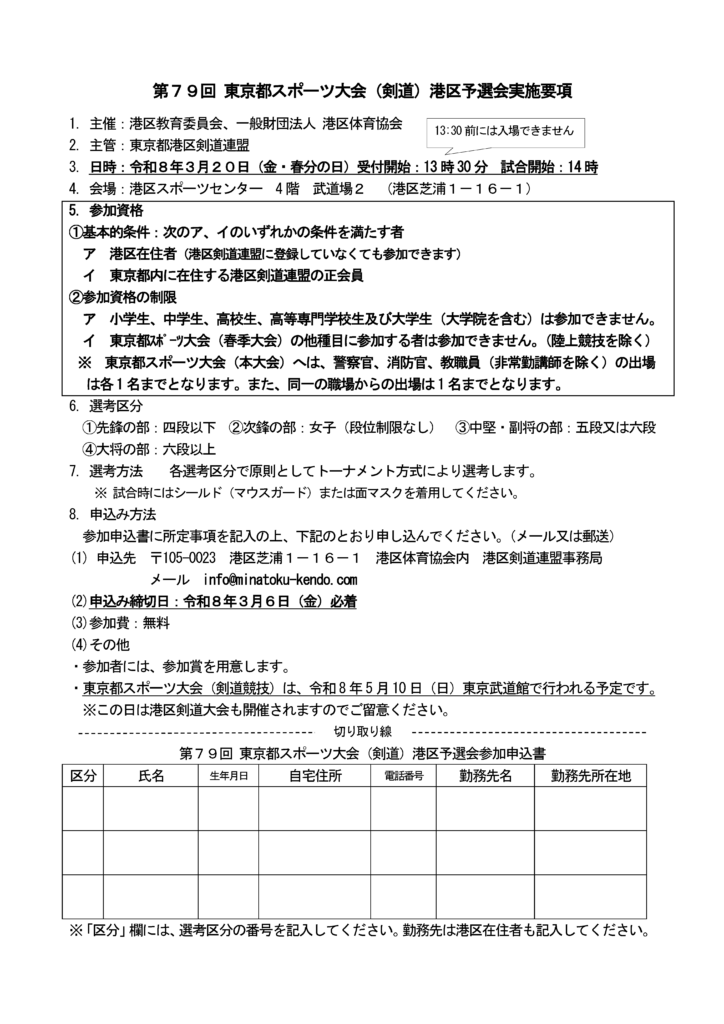 東京都スポーツ大会港区予選会のお知らせ(令和8年3月20日開催)